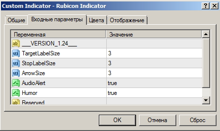 Настройки индикатора.